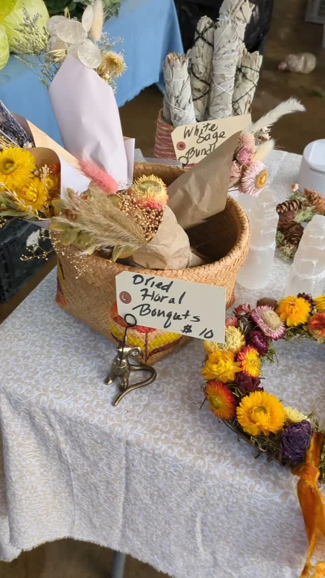 A Large smoke bouquet combines a dried floral bouquet with a white sage bundle, one palo santo stick and a selenite crystal. DM me for inquiries.